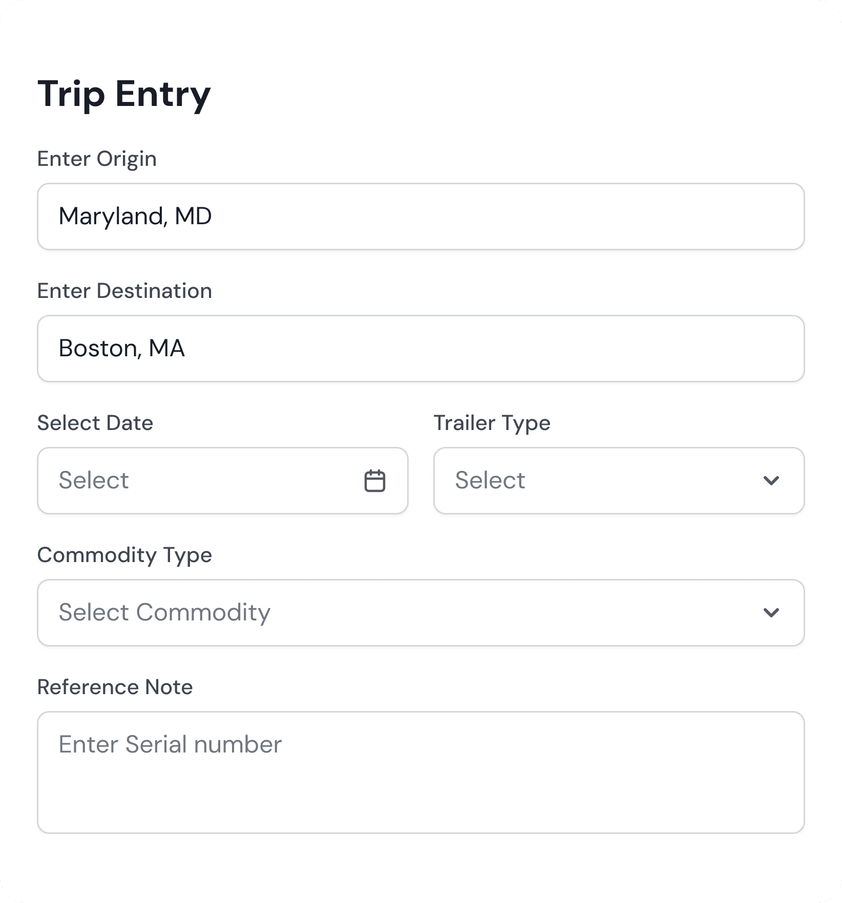 Enter Trip Details